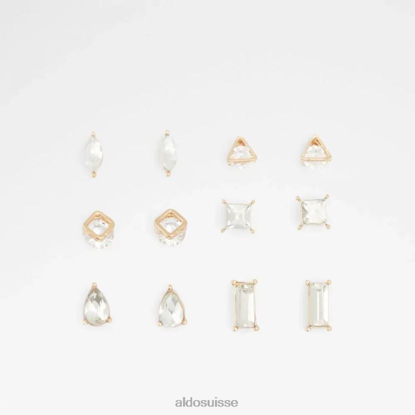 choisissez la quantité parfaite de glamour en fonction de votre humeur parmi cet ensemble de six paires de boucles d’oreilles en cristal. chaque paire de boucles d’oreilles à clous présente une délicate monture dorée avec des cristaux clairs ou clairs dans une gamme de formes étincelantes.