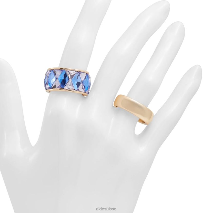 Amusante, colorée et parfaite pour égayer une tenue de tous les jours, cette bague de style bandeau dorée avec finition bleue est l’accessoire indispensable dont toute boîte à bijoux a besoin.